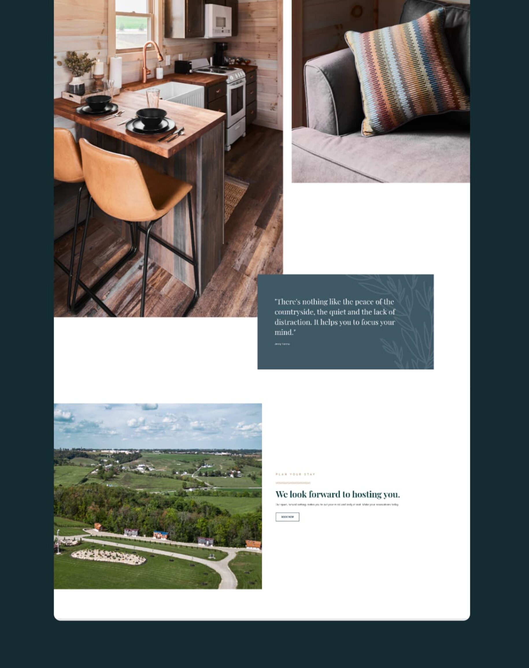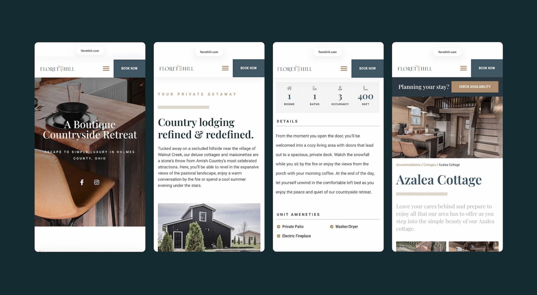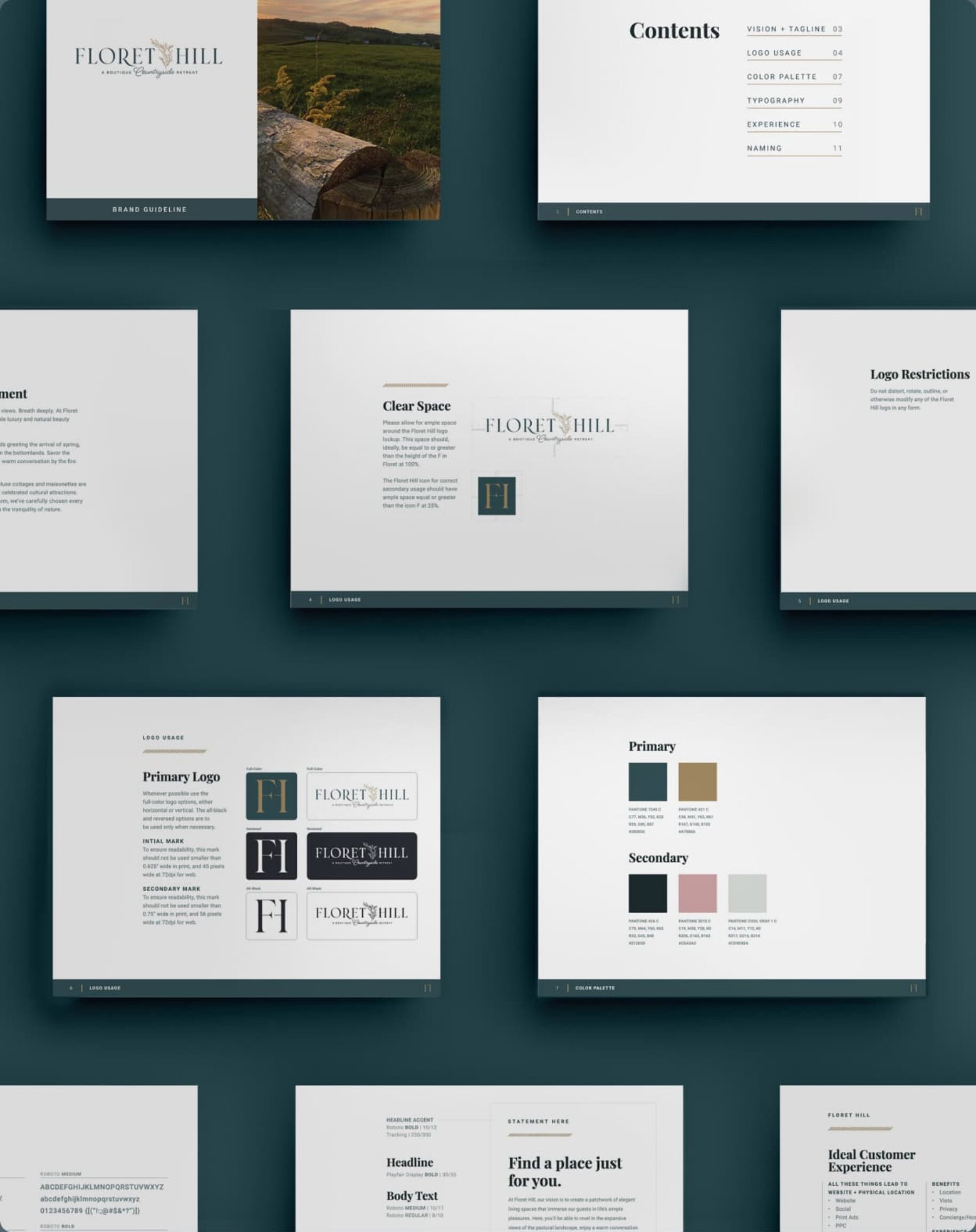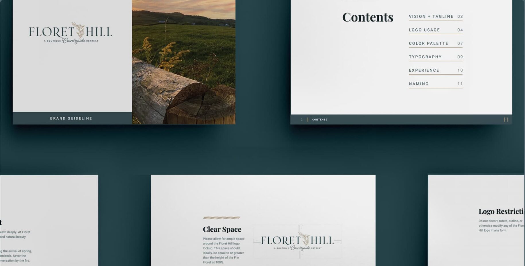 The Floret Hill brand seeks to immerse its guests in peace, comfort, and natural beauty through every season. From the business name to the logo, its strategy is driven by conveying an experience of simple luxury.