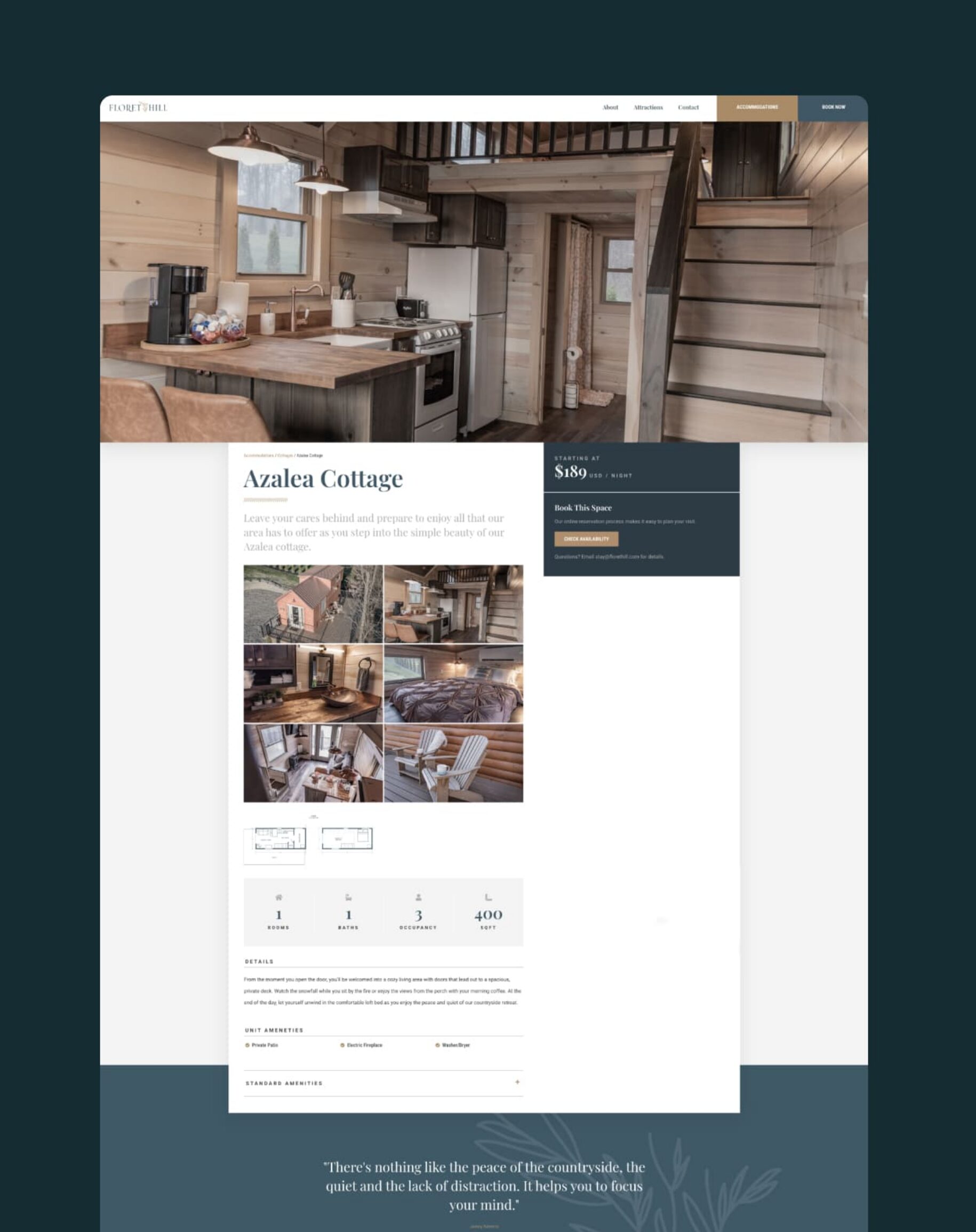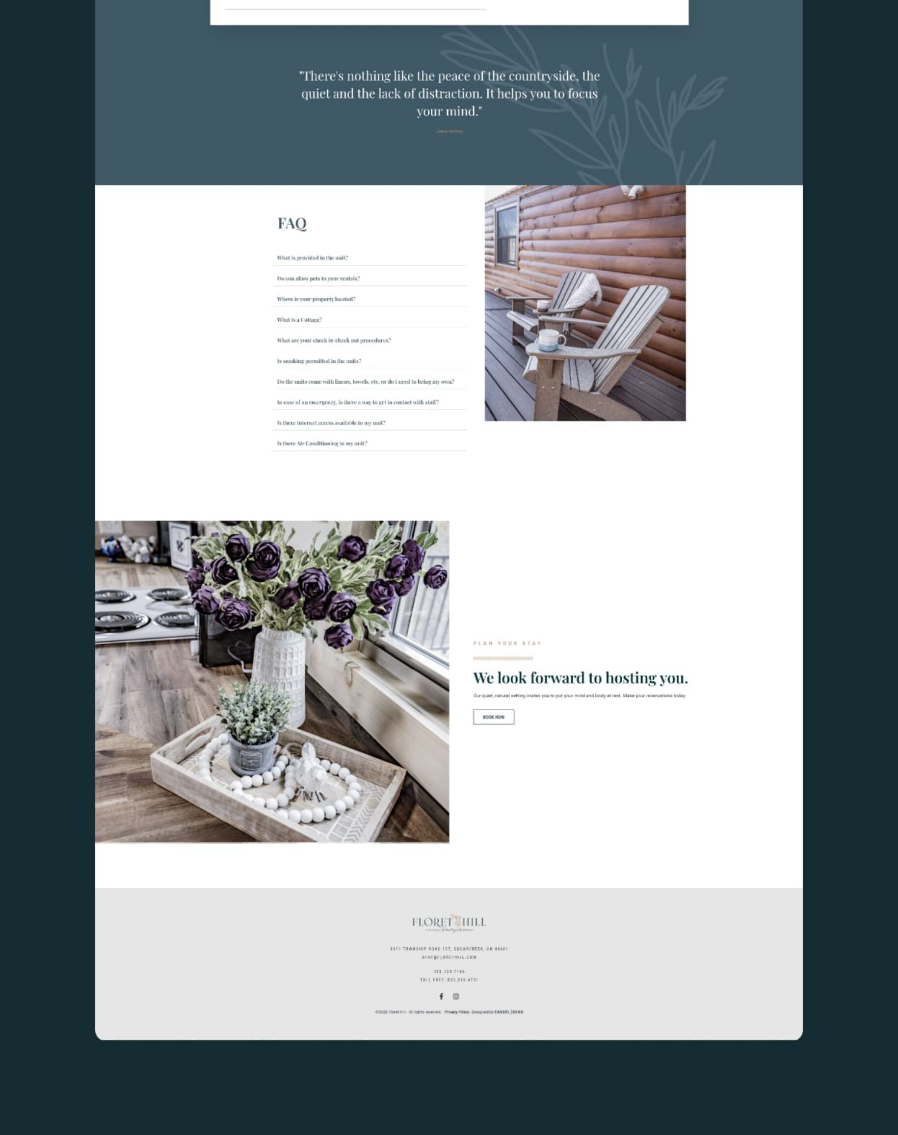 The Floret Hill website showcases the guest experience, informs visitors about accommodations, and allows for online reservations. Cassel Bear researched internet booking engines and seamlessly integrated the client’s chosen service into the site.